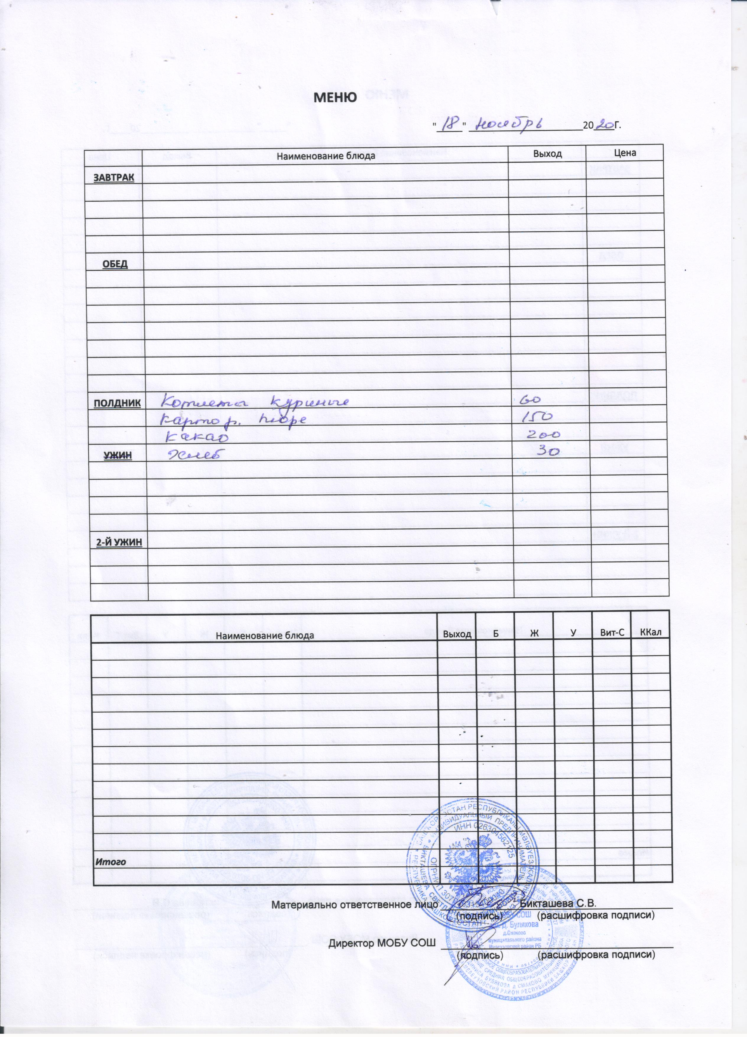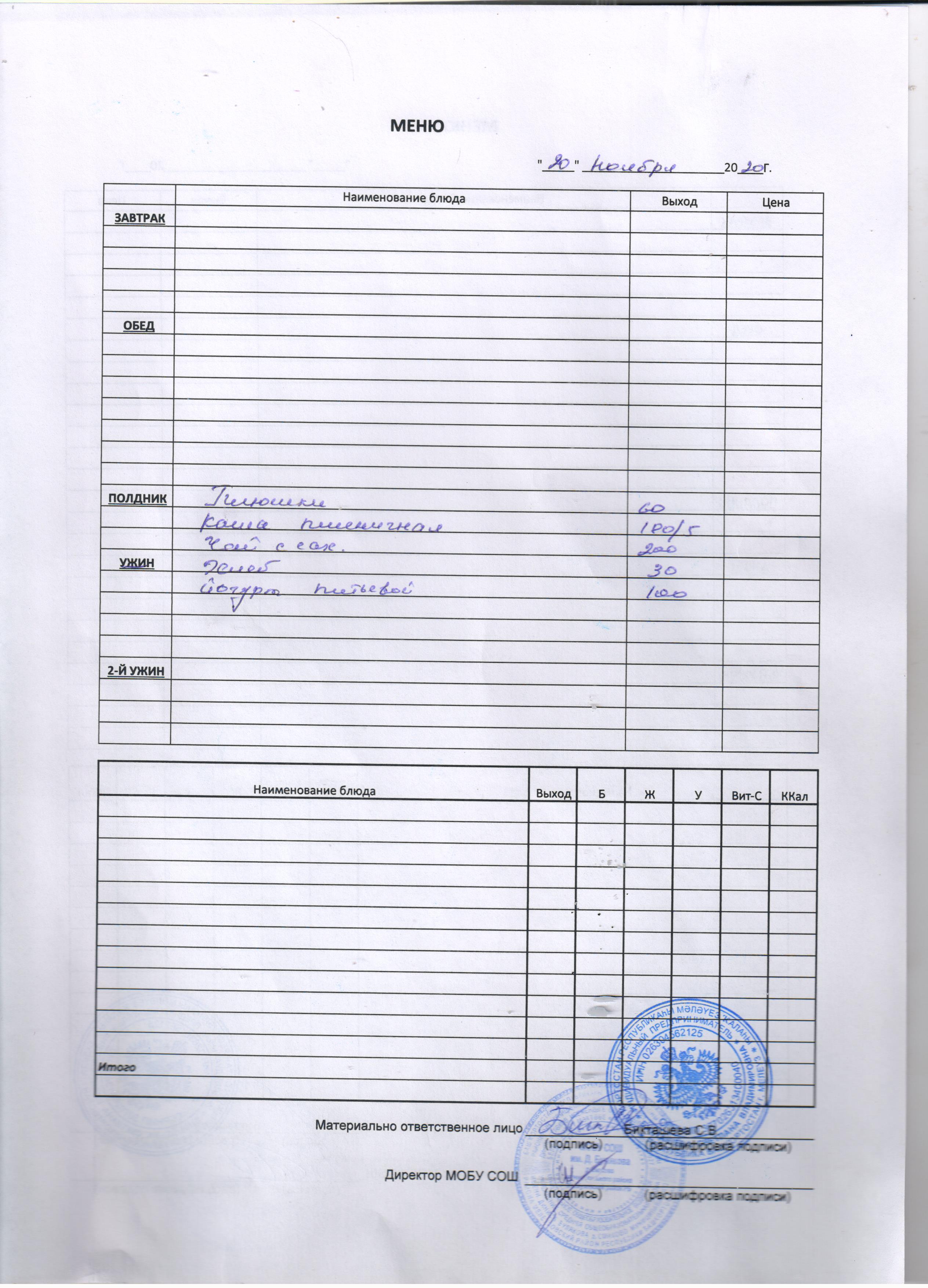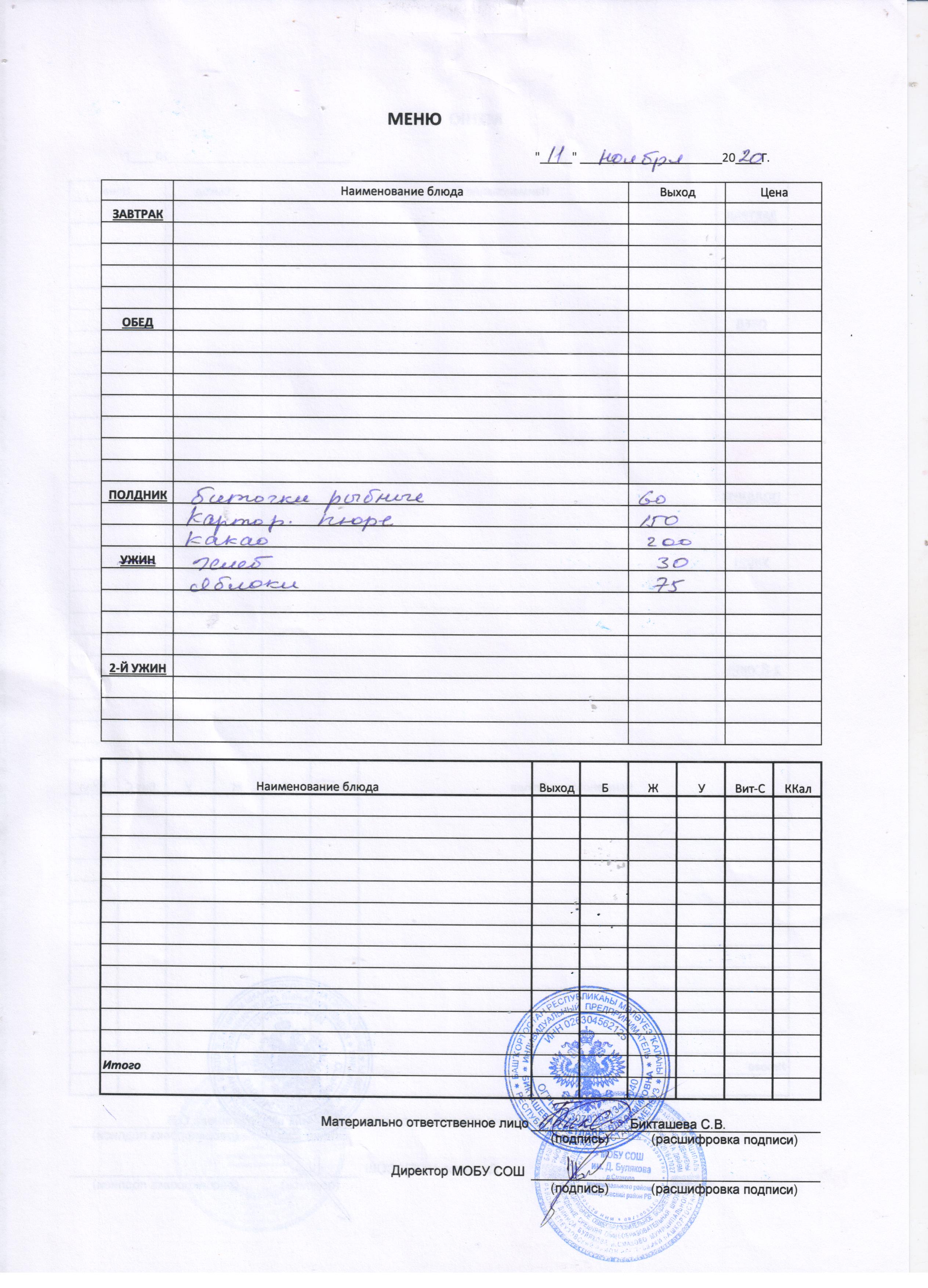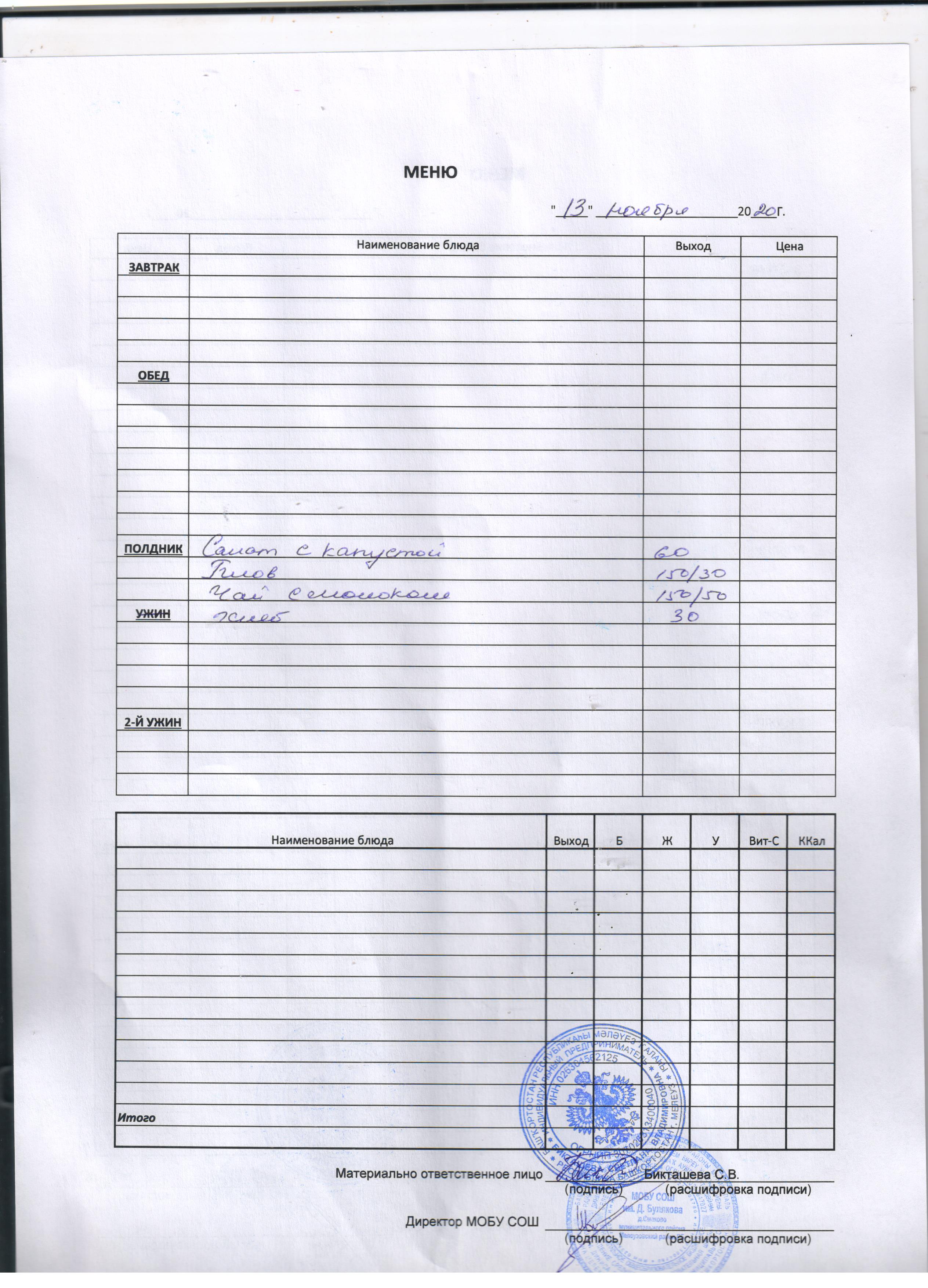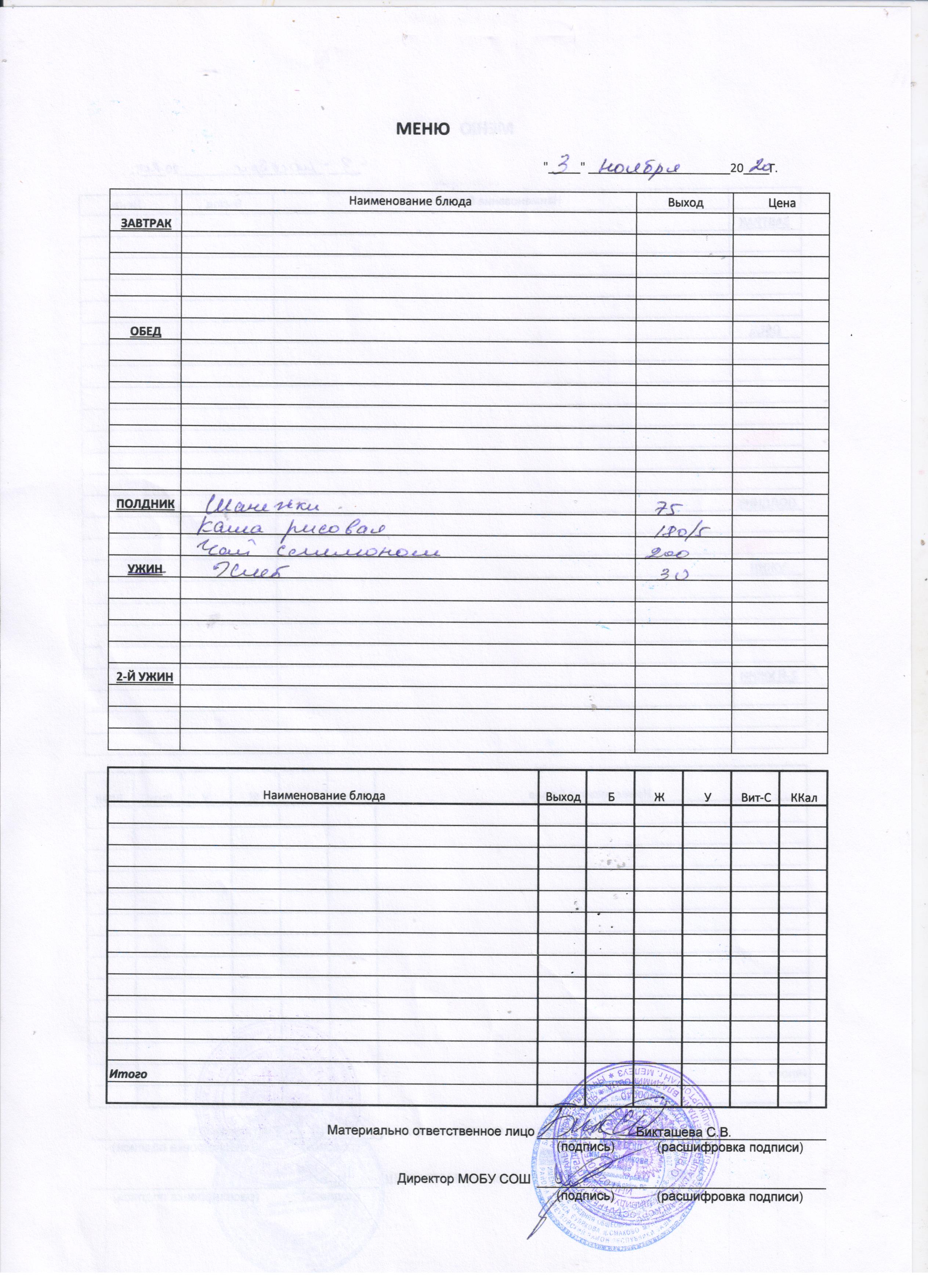 ИП «Бикташева» обеспечивает качественным питанием с разнообразным меню учащихся МОБУ СОШ им.Д.Булякова д.Смаково по дням недели, согласно санитарно-эпидемиологическим требованиям к организации питания учащихся (СанПин 2.4.52409-08), несет полную ответственность за качество приготовления пищи. При оказании услуг, с учетом возраста учащихся, соблюдаются требования настоящих санитарных правил по массе порций блюд, пищевой и энергетической ценности, суточной потребности в основных витаминах и микроэлементах.