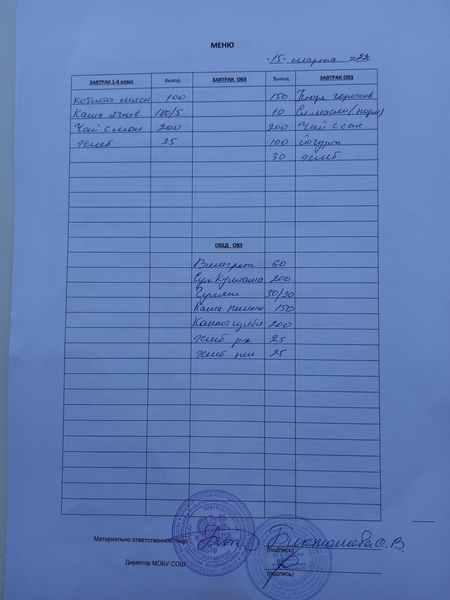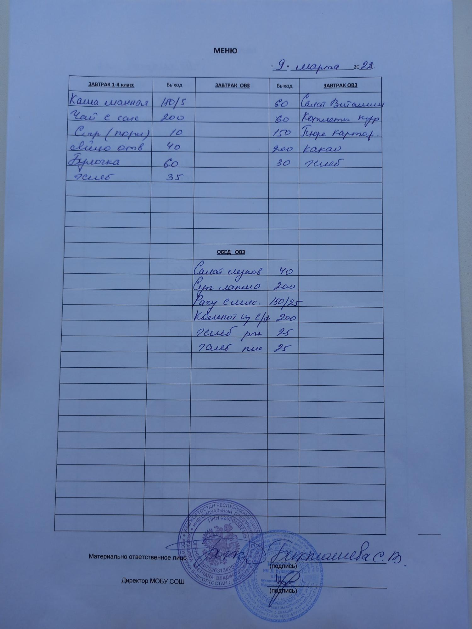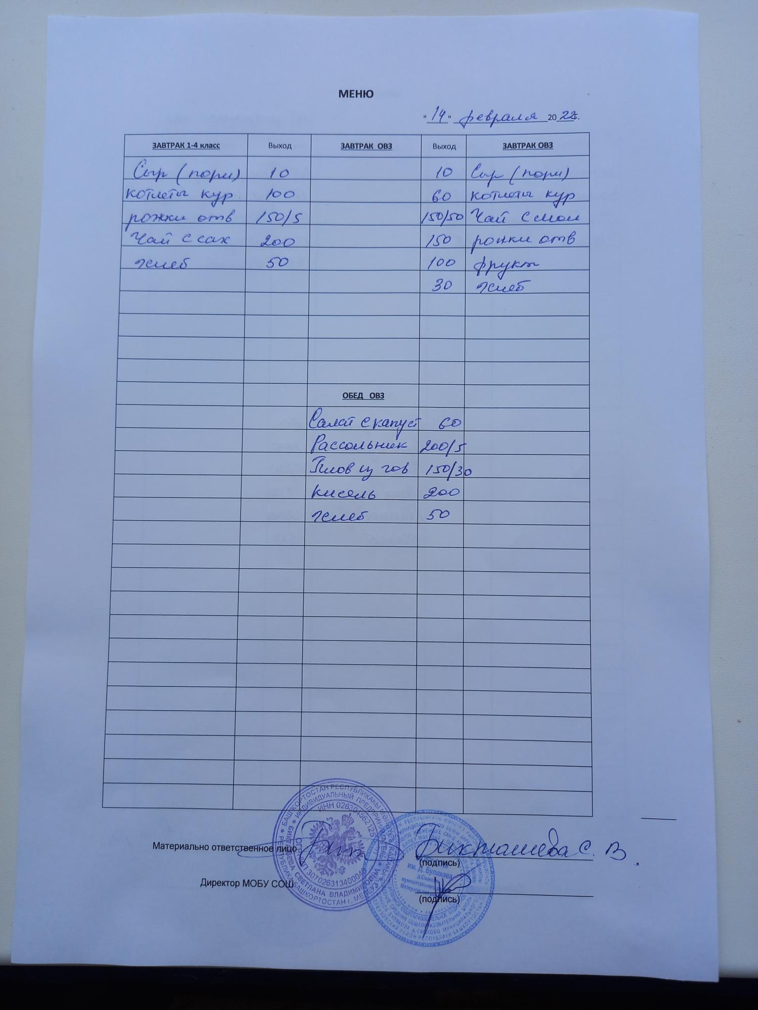 (завтрак ОВЗ)
