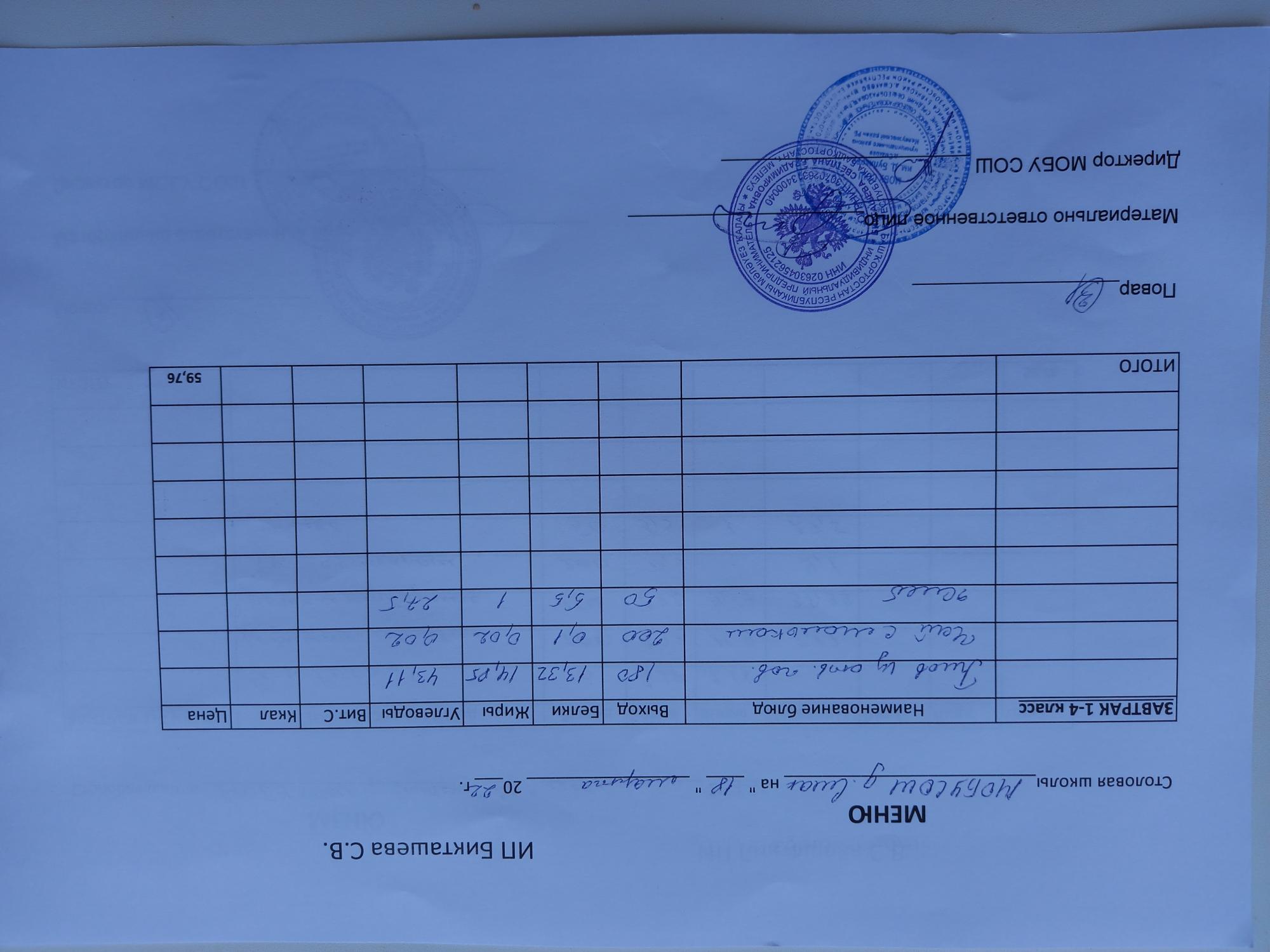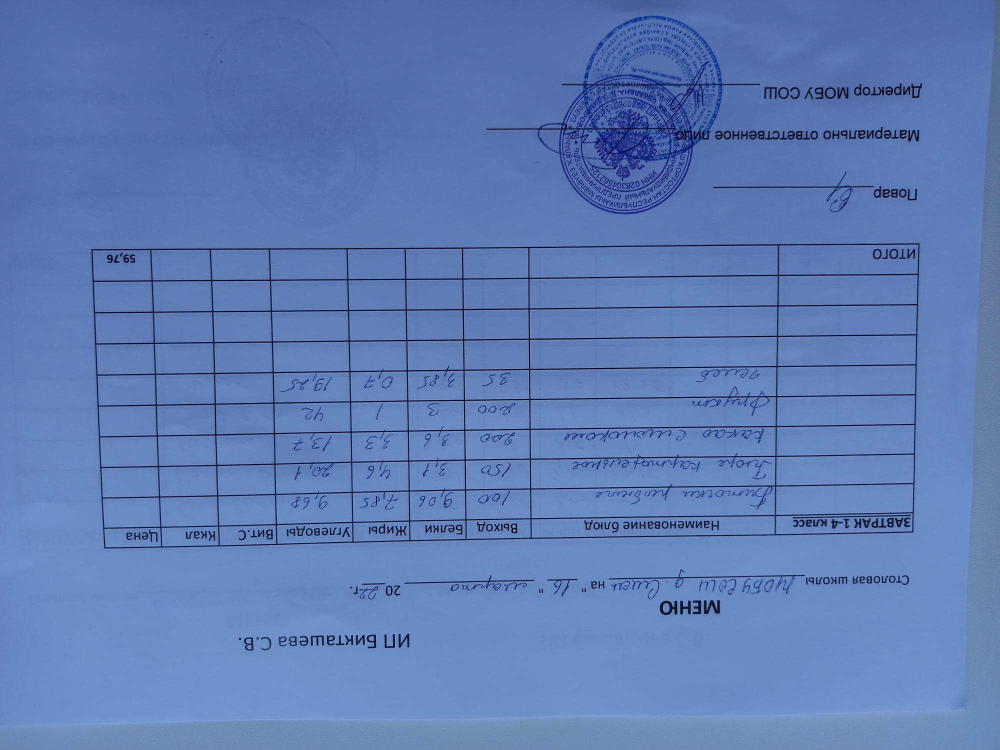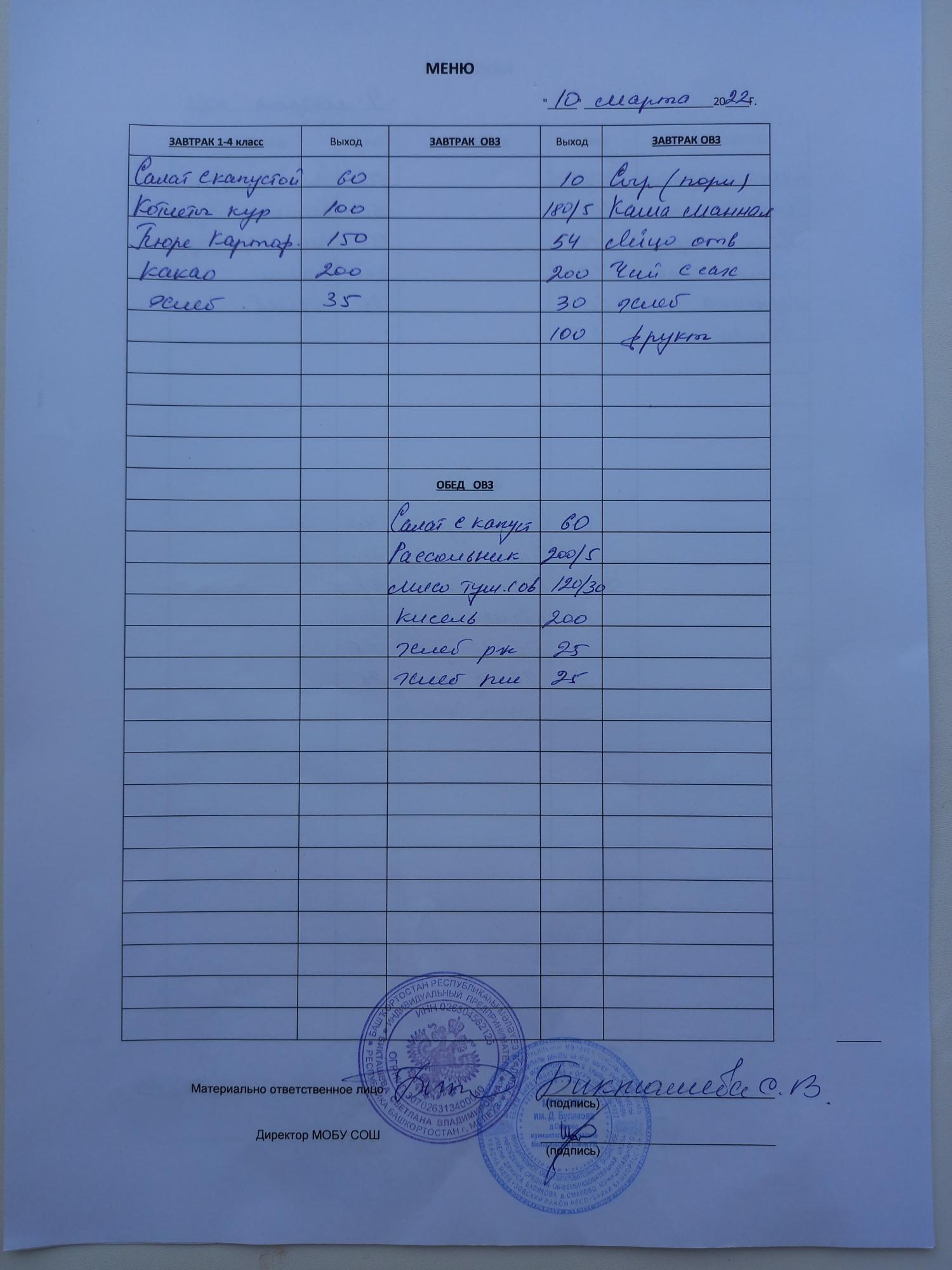 (завтрак ОВЗ)