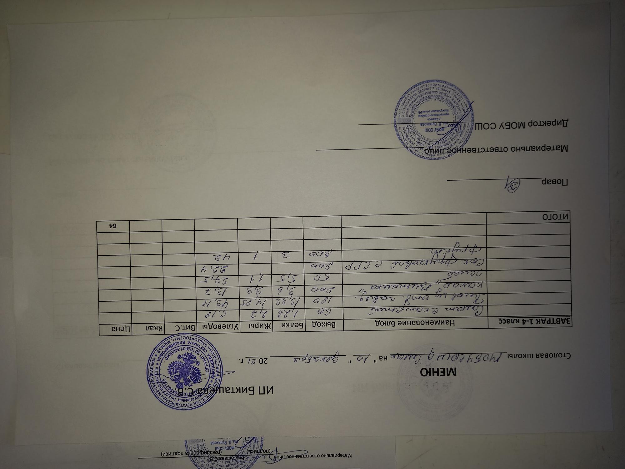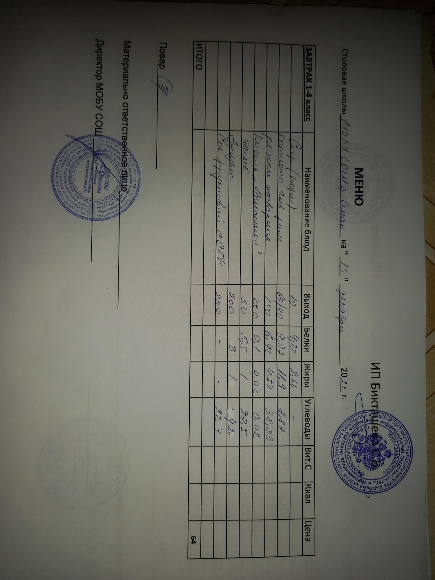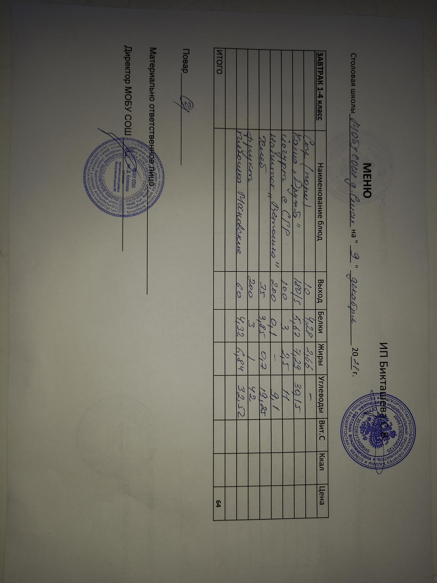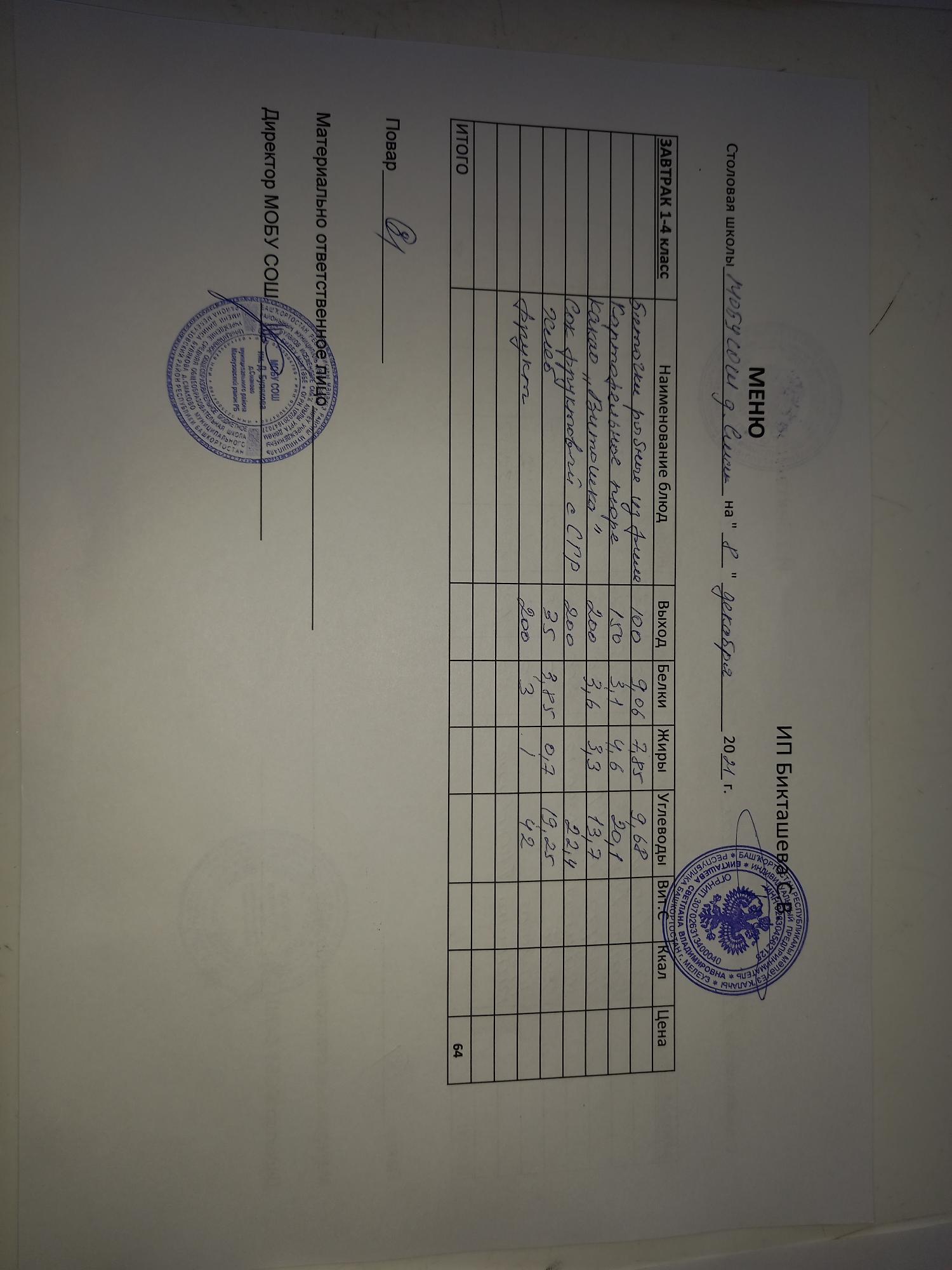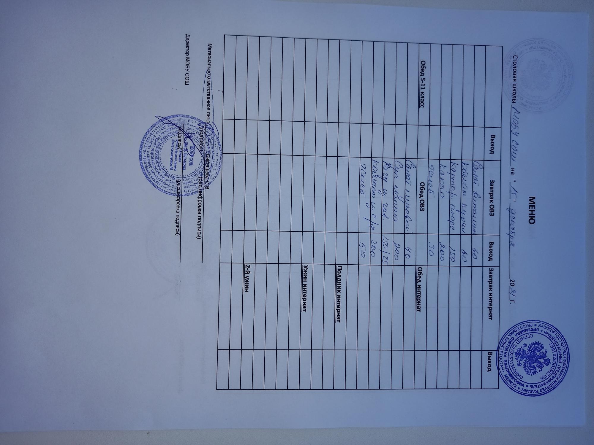 (завтрак ОВЗ)