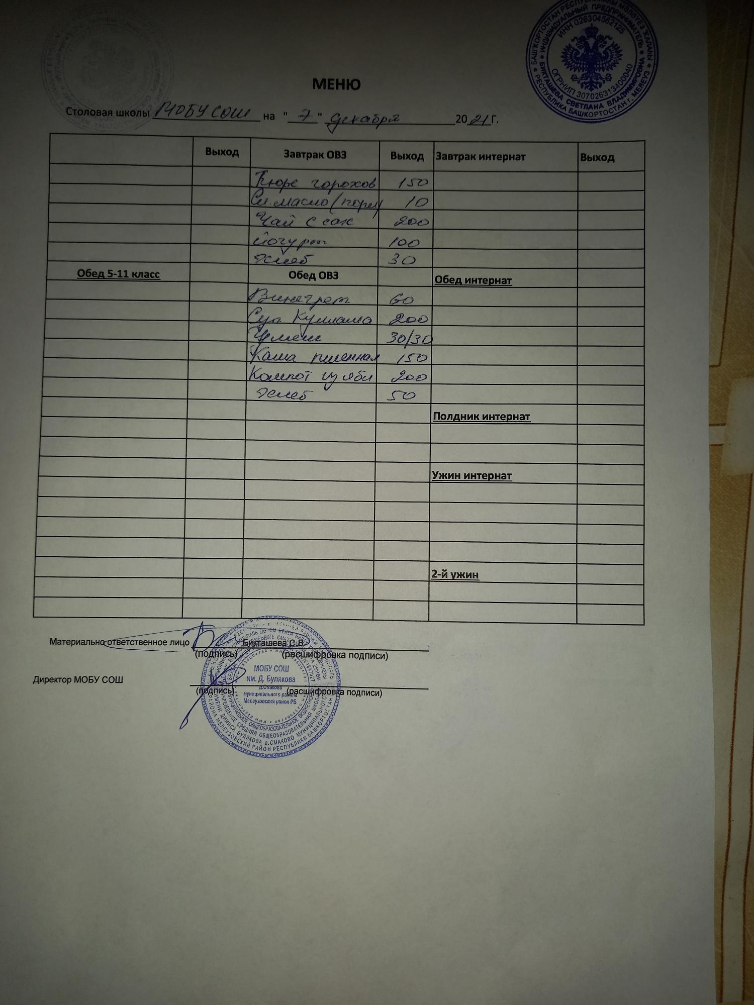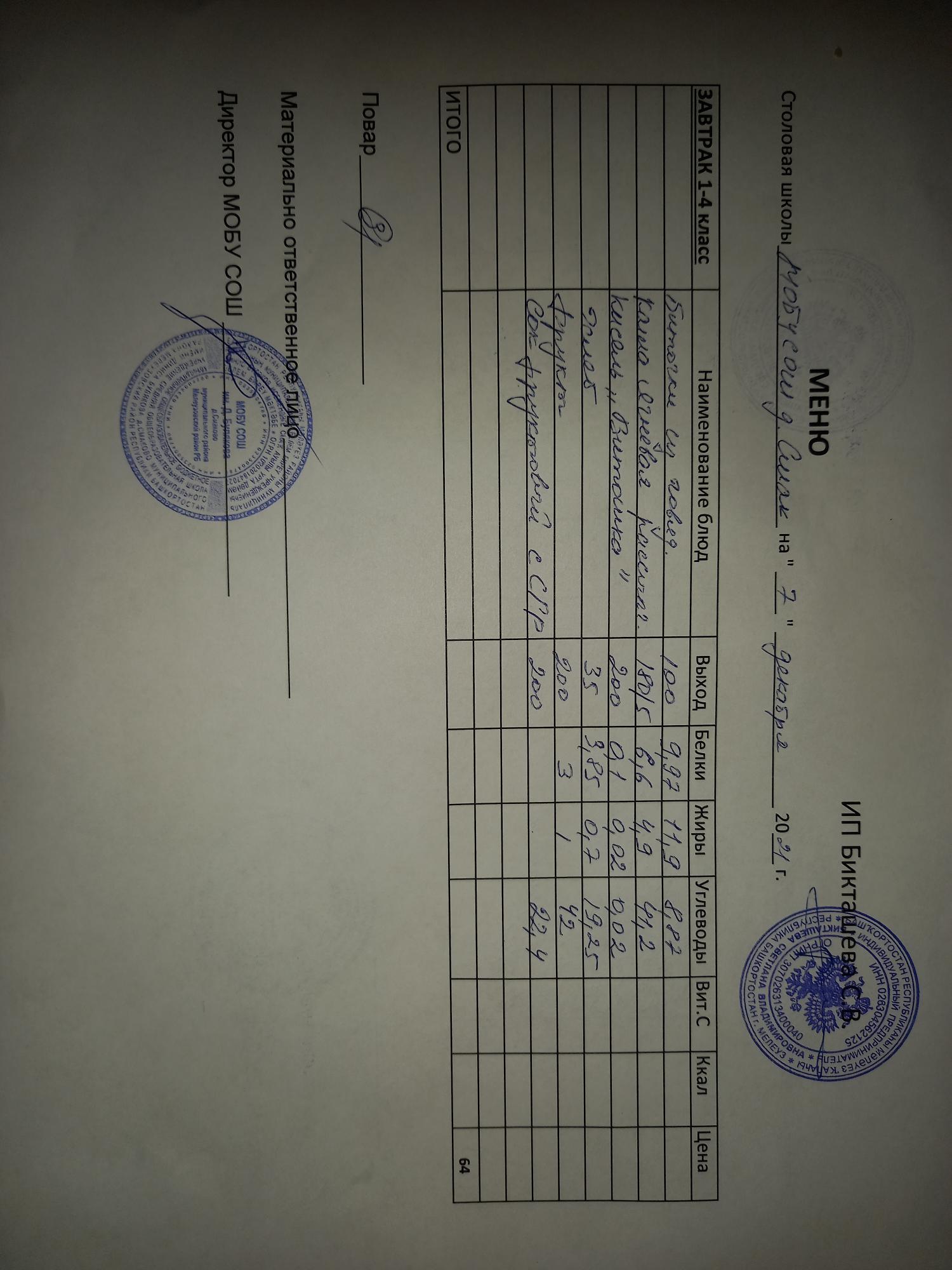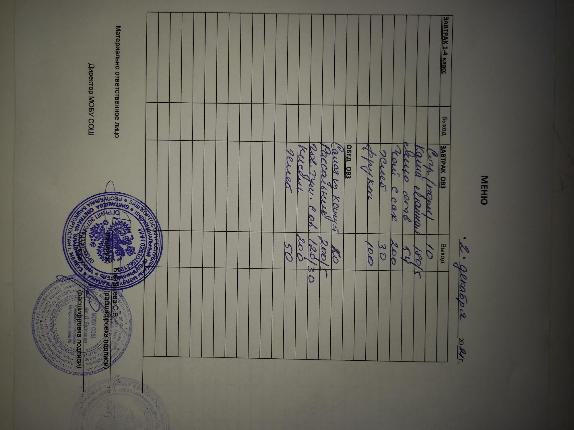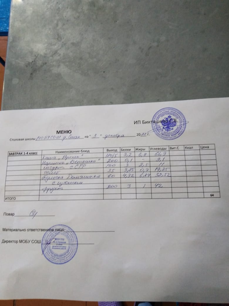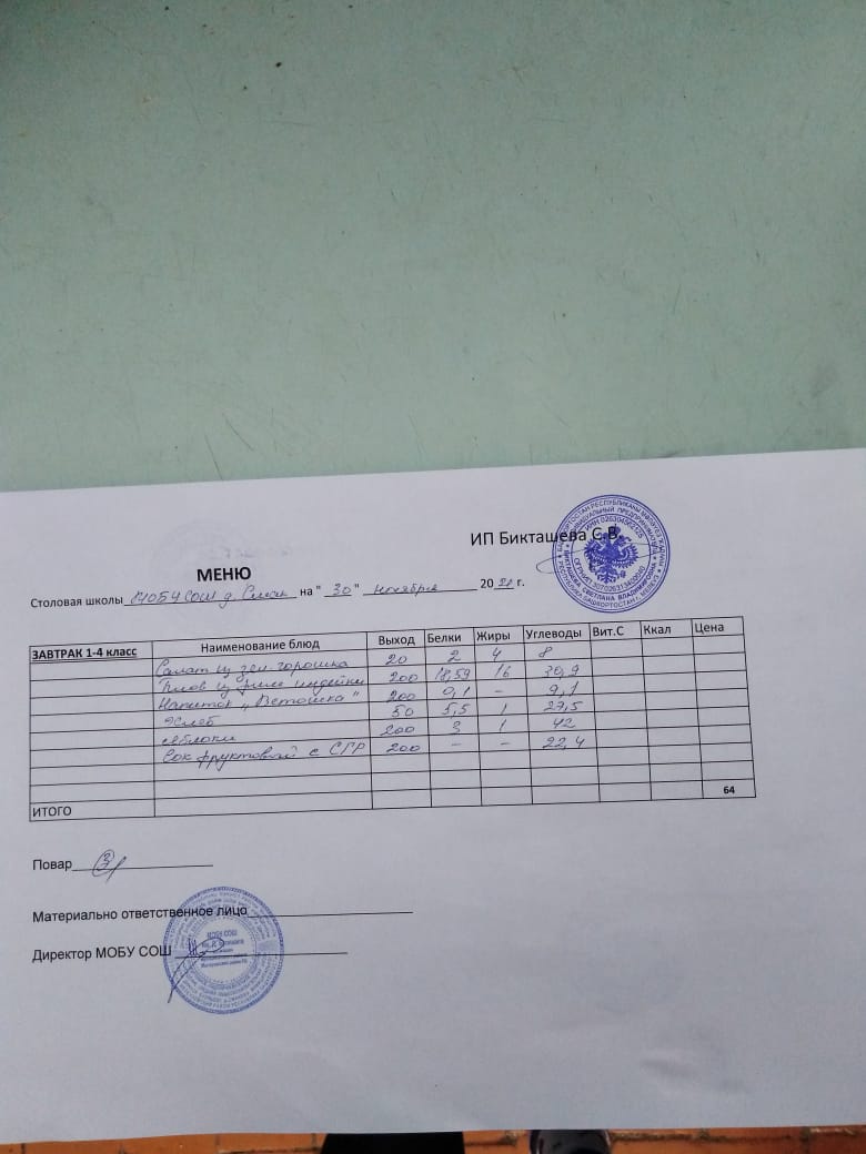 (Меню Начальные классы)
