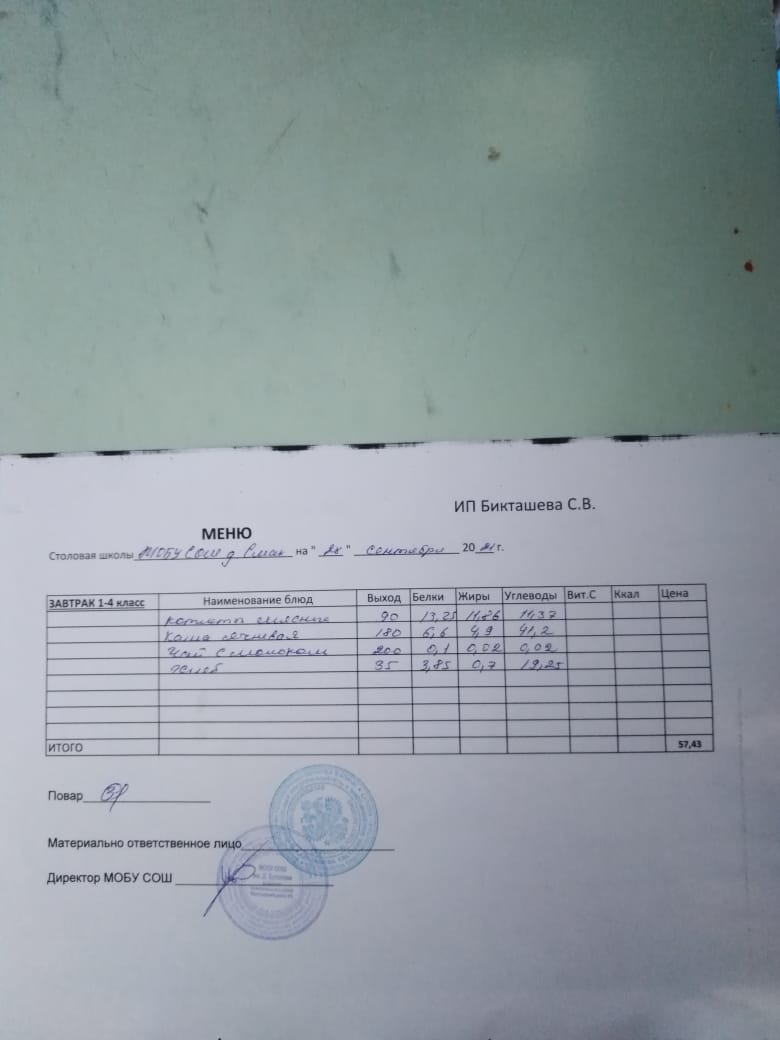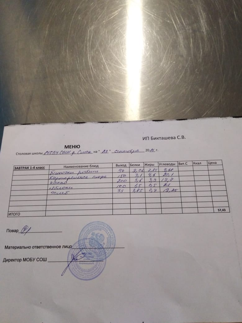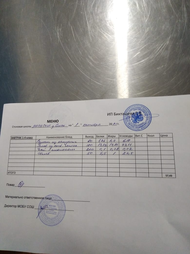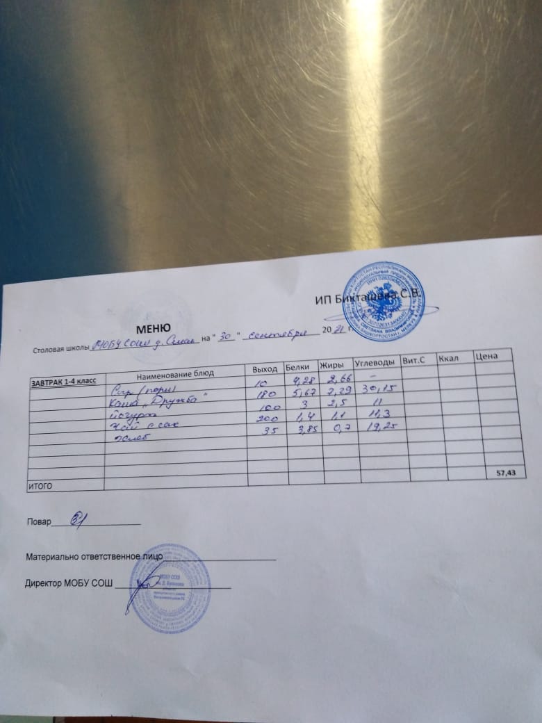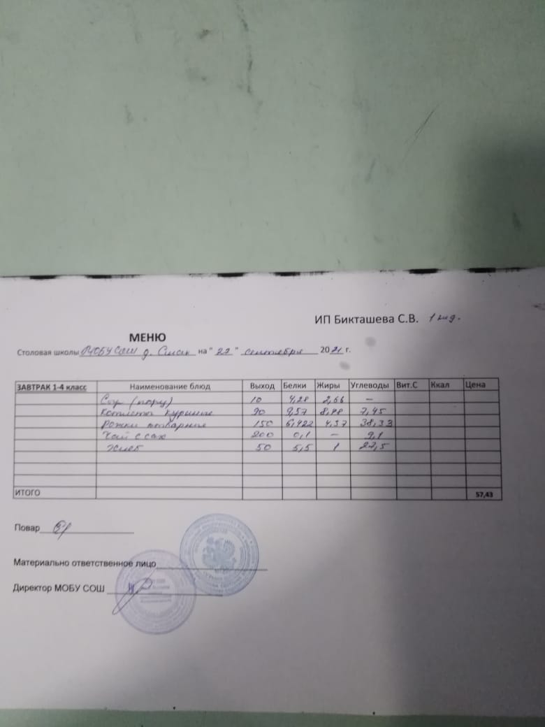 (завтрак ОВЗ)